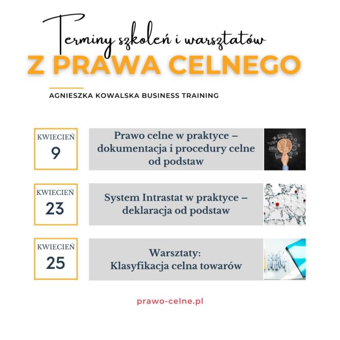 Czy chcesz opanować tajniki prawa celnego, zdobyć niezbędną wiedzę dotyczącą dokumentacji i procedur celnych? Zapraszam na intensywne szkolenie online! Zadbaj o swoją wiedzę, zadając pytania w trakcie szkolenia???? Dostępne Terminy